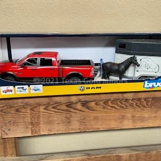 Bruder Toy Company is the world rebound manufacture of “model like toy’s”. The company’s motto is “Just like the real thing”. This Ram truck and horse trailer is a toy for your little westerner that they will treasure just like the real thing. A beautiful Red Ram Truck complete with the horse and trailer is a wonderful gift!