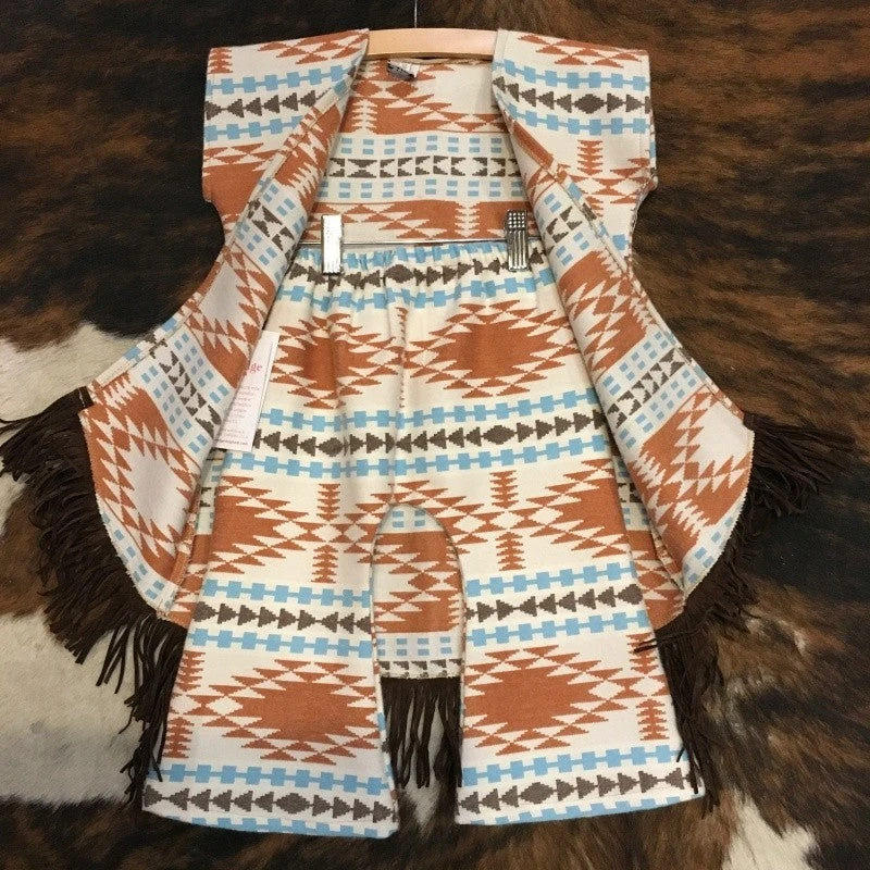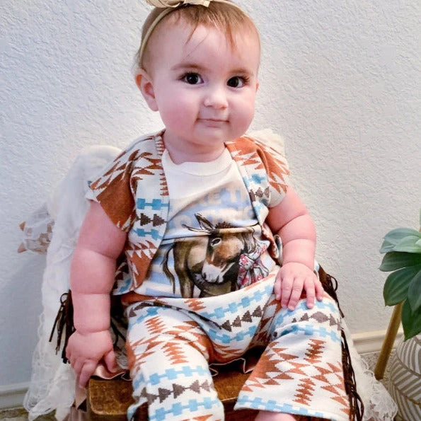 This handmade vest and pant set makes the perfect outfit! Wear it over your favorite western onesie or tee, to create a stylish look!