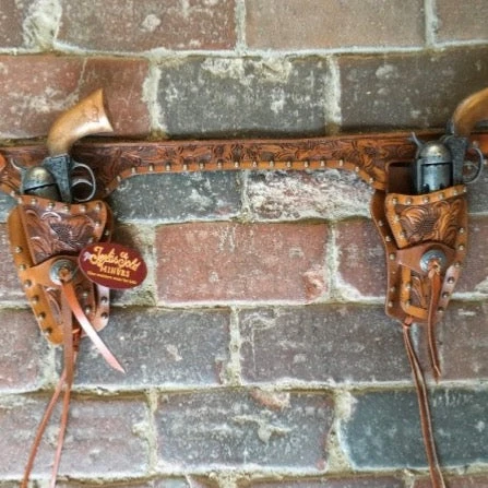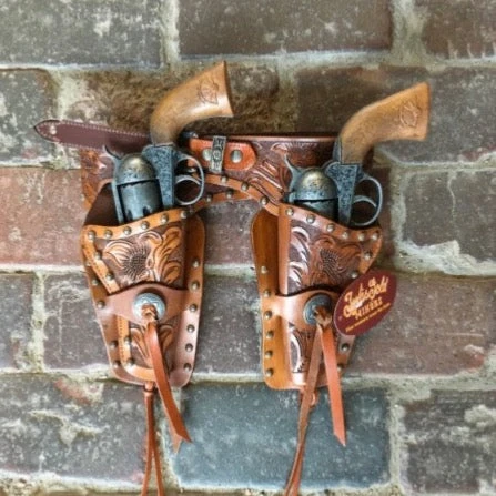 This western-style gun holster is crafted from hand-tooled real leather in a beautiful brown hue. Featuring detailed artistry and coming in two convenient sizes (28.5 and 32.5 inches), the KIDS TOY Holster Brown Hand Tooled Gun is an heirloom-quality piece that will be treasured for many years to come.