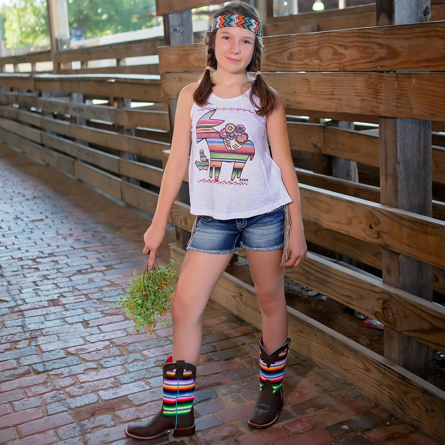 These cute boots from Macie Bean have Super Serape tops with Toast Bison feet and Roper heels. Style # MK9078