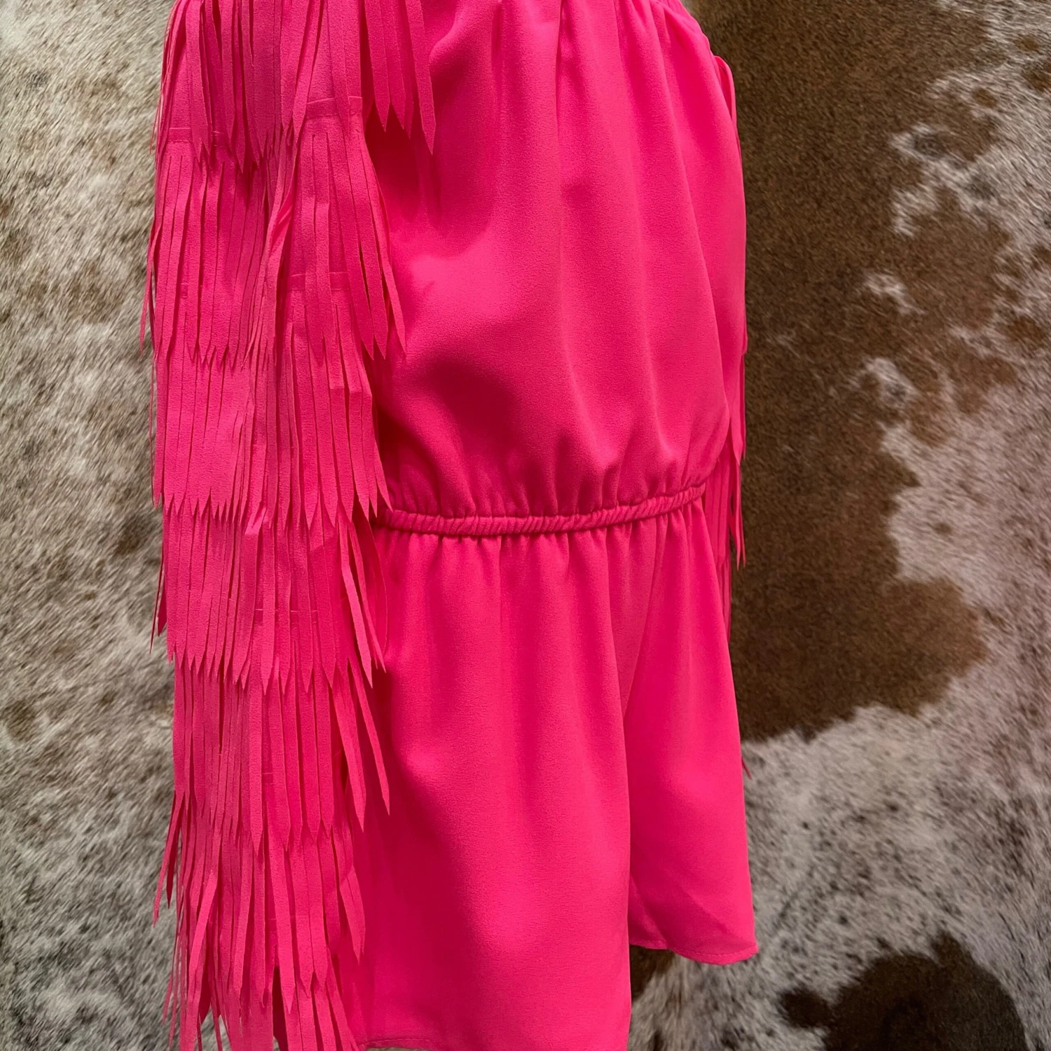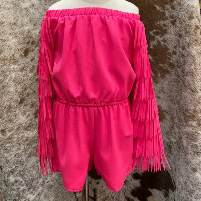 They can rock this outfit out when attending parties, family gatherings, and anything else in between. Plus, the hot pink color and fringe sleeves enhance the overall look– truly making anyone who wears this romper an instant star!