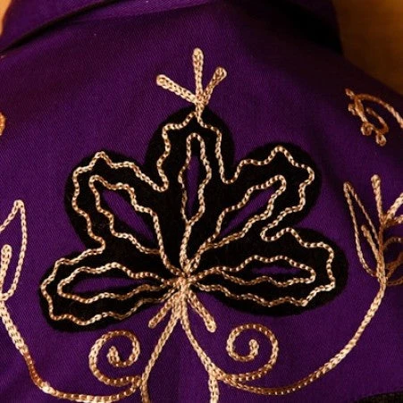 Purple cotton is soft and comfortable. Embellishments are hand-applied and beautiful!