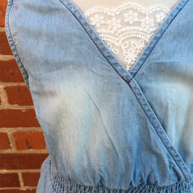 This ravishing western chambray dress is as pretty as a picture! It consists of beautiful lace in the v-neck area and under. Perfect spring outfit for any cowgirl!